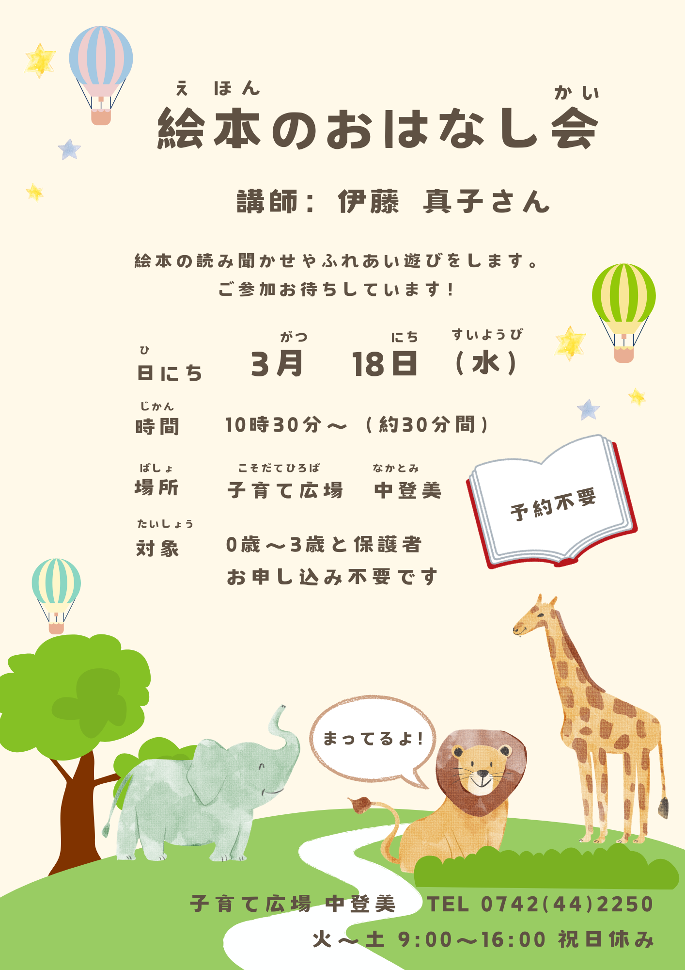 3月の中登美だよりでお知らせした絵本のおはなし会ですが