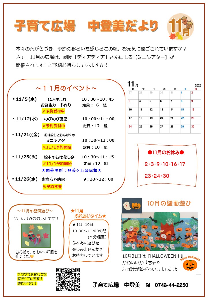 11月も楽しい絵本や遊びの時間をご用意して、たくさんのお友達のご参加をお待ちしています♪