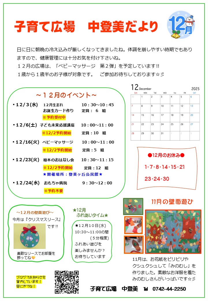 いつも子育て広場中登美に遊びに来ていただき、ありがとうございます。